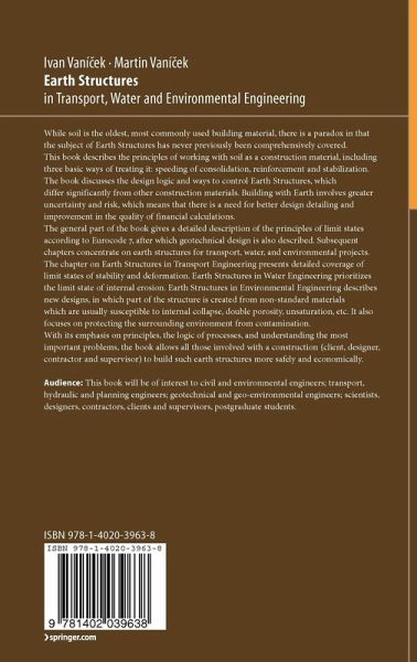 Soil represents the oldest and most-used building material, yet up to now the subject of earthen structures has not been fully addressed. This book describes the principles of soil as construction material including its treatment using geosynthetics and stabilization. The book focuses on the principles, logic of processes, understanding of the most important problems, so that all participants in the construction project can build earth structures more safely and economically.