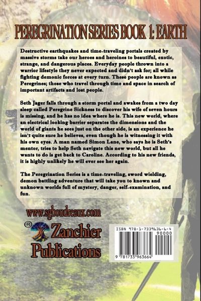 A life he never expected. A love lost forever? Destructive earthquakes and time-traveling portals created by massive storms take our heroes and heroines to beautiful, exotic, strange, and dangerous places. Everyday people thrown into a warrior lifestyle they never expected and didn't ask for; all while fighting demonic forces at every turn. These people are known as Peregrines; those who travel through time and space in search of important artifacts and lost people. Seth Jager falls through a storm portal and awakes from a two day sleep called Peregrine Sickness to discover his wife of seven hours is missing, and he has no idea where he is. This new world, where an electrical looking barrier separates the dimensions and the world of giants he sees just on the other side, is an experience he isn't quite sure he believes, even though he is witnessing it with his own eyes. A man named Simon Lane, who says he is Seth's mentor, tries to help Seth navigate this new world, but all he wants to do is get back to Caroline. According to his new friends, it is highly unlikely he will ever see her again. The Peregrination Series is a time-traveling, sword wielding, demon battling adventure that will take you to known and unknown worlds full of mystery, danger, self-examination, and fun.