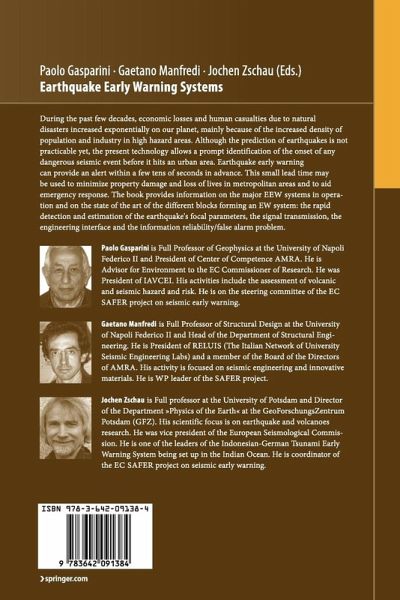 During the past few decades of the 20th and the first years of the present Century, economic losses and human casualties due to natural disasters increased exponentially on our planet, mainly because of the increased density of population and industry in high hazard areas. Although the prediction of earthquakes is not practicable yet, the present technology allows a prompt identification of the onset of any dangerous seismic event before it hits an urban area. Hence early warning- and rapid disaster information systems are becoming important means for strengthening the resilience of our society against the negative consequences of extreme seismic events. Earthquake early warning can provide an alert within a few tens of seconds in advance. This small lead time may be used to minimize property damage and loss of lives in metropolitan areas and to aid emergency response. The book provides information on the major EEW systems in operation and on the state of the art of the different blocks forming an EW system: the rapid detection and estimation of the earthquake's focal parameters, the signal transmission, the engineering interface and the information reliability/false alarm problem.