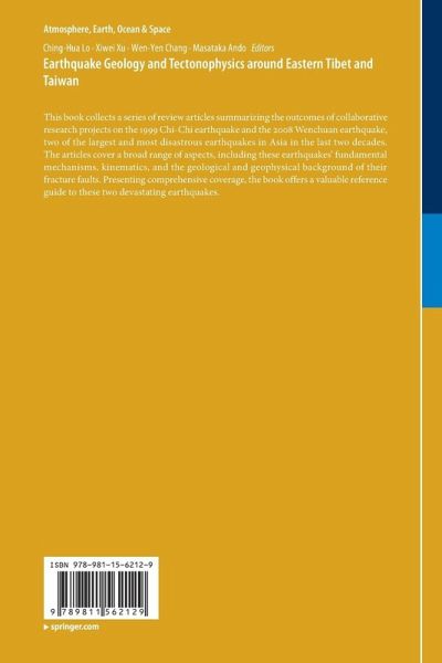 Ching-Hua Lo, Xiwei Xu, Wen-Yen Chang and Masataka Ando: Preface.- Zhao, Li: From Chi-Chi to Wenchuan: Two Decades of Earthquake Research in Taiwan and Mainland China.- Xu, Xiwei, Huang, Bor-Shouh, Chang, Chung-Pai, Y. X. Lee, Xibin Tan, Qi Wang and Chong Xu: The Geology, Geophysics and Geodesy of the Wenchuan Mw7.9 Earthquake.- Ma, Kuo-Fong, Hidemi Tanaka, and Yen-Yu Lin: Earthquake kinematics and fault zone dynamics associated with the 1999 Chi-Chi Earthquake.- Renqi Lu: Seismotectonics of the 2013 Lushan Mw 6.7 earthquake.- Xhifeng Ding: Research on the deep structure of the eastern margin of the Tibetan Plateau from China array.- Kuo-Chen, Hao, Hui-Teng Cai, Chien-Ying Wang, Xin Jin, Wen-Yen Chang: Crustal Structures from Wuyi-Yunkai Orogen to Taiwan Orogen.- Xu, Xiwei, Cheng-Horng Lin et. al.: Seismo-geological signatures for M 7.0 earthquake risk areas and their experimental prediction.