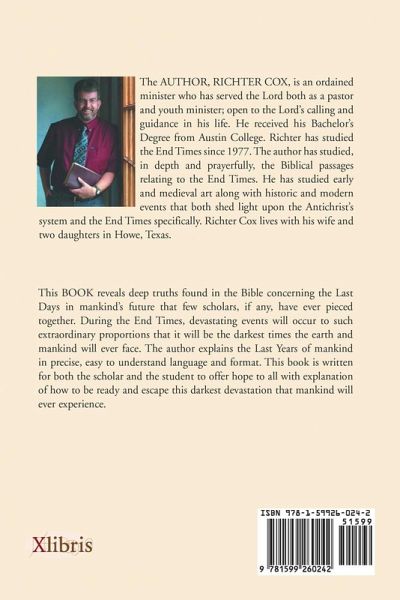 This BOOK reveals deep truths found in the Bible concerning the Last Days in mankinds future that few scholars, if any, have every pieced together. During the End Times, devastating events will occur to such extraordinary proportions that it will be the darkest times the earth and mankind will ever face. The author explains the Last Years of mankind in precise, easy to understand language and format. This book is written for both the scholar and the student to offer hope to all with explanation of how to be ready and escape this darkest devastation that mankind will ever experience. There is a way of escape from the Great Tribulation; the seven-year period of extraordinary disasters that will befall the earth and mankind by earthquakes and large asteroid or asteroid-like objects that deface the earths surface. One ruler takes over the world by force, killing billions of people. This same ruler will control everyone on the earth except those who refuse his mark. The fate of those who take his mark and those who do not are discussed with exact Biblical references. What is his mark? The author shares his views and Biblical truth about this mark. Earths Darkest Hour Mans Darkest Hour also expounds on the following: Events that must happen before Earths and Mans Darkest Hour takes place. How to escape the End Times disasters. The events that happen to those caught up in the seven-year Tribulation Period. This book describes the details of the seven-year Tribulation Period when the worst terrors in all of human history will take place on the earth and to mankind. This BOOK gives you the Biblical reasons why these events take place. The length of time the one world ruler will rule the earth and his outcome. This book tells you plainly what happens after Armageddon. Earths Darkest Hour Mans Darkest Hour gives you the population decreases on the earth, given in the Book of Revelation, that allows you to understand how devastating the End Times disasters will effect mankind as a whole. This BOOK describes the Antichrists system in detail. You dont have to follow the Antichrist or take his mark. There is hope for those who find themselves living during the Tribulation Period; The Earths Darkest Hour Mans Darkest Hour.