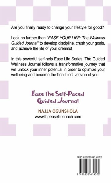 Are you ready to accomplish the wellness goals you've always dreamed of, with ease and clarity? Look no further than "EASE YOUR LIFE: The Wellness Guided Journal." In this powerful self-help guide, you'll embark on a transformative journey that will unlock your inner potential and guide your path to improving overall mental, physical, and emotional health. Benefits:Manifest Your Goals with Ease: Discover the secrets to harnessing the law of attraction and manifesting your fitness goals effortlessly. "EASE YOUR LIFE" provides practical techniques and prompts to turn your aspirations into reality. Unleash Inner Power: Tap into your inner strength and resilience as you delve into the book's wisdom. You'll gain a deep understanding of your own potential and learn how to use it to your advantage. Reduce Stress and Anxiety: Bid farewell to stress and anxiety as you incorporate stress-reduction strategies from the book into your wellness journey. Find serenity even in life's toughest moments. Unlock Clarity and Purpose: Gain a clear sense of direction as you explore your values and goals, answering the WHY. "EASE YOUR LIFE" will help you align your wellness journey with your true life's purpose. Transform Your Reality: Through powerful visualization and manifestation exercises, you'll be equipped to shape your reality, turning your visions into tangible achievements. Whether you seek to improve your body, mind, relationship with food, or any personal growth, this book is your guide to making it happen.