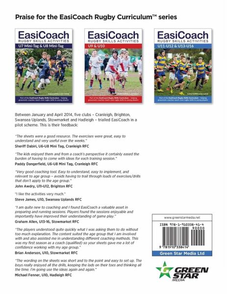 New to coaching? Not sure what to coach, or even how to coach? Help is at hand, even for "non-rugby" volunteers EasiCoach Rugby Skills Activities: U11-U12 & U13-U16 contains ready-made, age-appropriate, safe training activities that even a child could understand. They are called EasiCoach because they are simple and easy to follow. EasiCoach coaching activities will help you to: . Quickly understand what it is you're trying to achieve. . See what you need to do from just a few words and pictures . Grasp the key dos and don'ts at a glance . Check you have all the equipment you need (never more than basics) . Cater for more or fewer players at your session . Speak to your players with confidence But here's what really great about the EasiCoach approach - follow all the materials in each manual, and your players will be learning the right skills for the right age group every season.