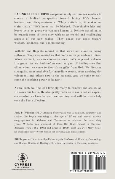 EASING LIFE'S HURTS compassionately encourages readers to choose a biblical perspective toward facing life's bumps, bruises, and disappointments. While optimistic, it makes no claim that all life's hurts can be blocked. Unavoidable hits and losses help us grasp our common humanity. Neither can all pains be erased; some of them stay with us as crucial and challenging aspects of our new reality. They shape our souls toward wisdom, kindness, and understanding. Wilhelm and Bagents remind us that we're not alone in facing setbacks. They also remind us that we're never powerless victims. When we hurt, we can choose to seek God's help and welcome His grace. As we heal-often even as part of healing-we find allies whom we come to identify as gifts from God. We discover strengths, many available for immediate access, some awaiting development, and others new to the moment. And we come to welcome the soothing power of humor. As we hurt, we find God lovingly ready to comfort and assist. As He eases our hurts, He also gently pulls us to use what we experience-what we have learned, are learning, and will learn -to help ease the hurts of others.
