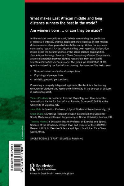 What makes East African middle and long distance runners the best in the world? How should contemporary academia approach this question? The success of East African distance runners has generated a plethora of studies but much of the 'evidence' presented to support hypotheses is anecdotal, arguments being led by non-academics who use popular media as their medium rather than relying on scientific publications. This has resulted in many stereotypical arguments being advocated. Within the academic community, research has also been restricted by its isolation within either the natural science or social science communities. East African Running: Towards a Cross Disciplinary Perspective, presents a rare collaboration between researchers from the sports sciences and social sciences to explore the questions raised by the phenomena of East African success on the track. The text includes: psycho-social and economic explanations physiological and genetic explanations attempts to provide unified theories bringing together ideas from natural and social sciences Includes contributions from John Bale, Jim Denison, Timothy D. Noakes and Craig Sharp.