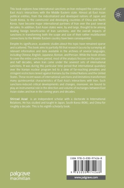 Despite its significance, academic studies about this topic have remained sparse and scattered. This book aims to partially fill that research lacuna by surveying all relevant information and data available in the archives of several languages, including Chinese, English, Japanese, Korean, and Persian. While the book strives to cover the entire sanctions period, most of the analysis focuses on the past one and a half decades, when Iran came under the severest sets of international sanctions. It was during this particular time period that international quandary over the Iranian nuclear program led to a slew of far-reaching penalties and stringent restrictions levied against Iranians by the United Nations and the United States. These recent waves of international sanctions and limitations transformed many quintessential characteristics of East Asia's interactions with Iran. Such sanctions-induced critical developments and changes, moreover, are bound to play an instrumental role in the direction and volume of exchanges between East Asian states and Iran in the coming years and decades.