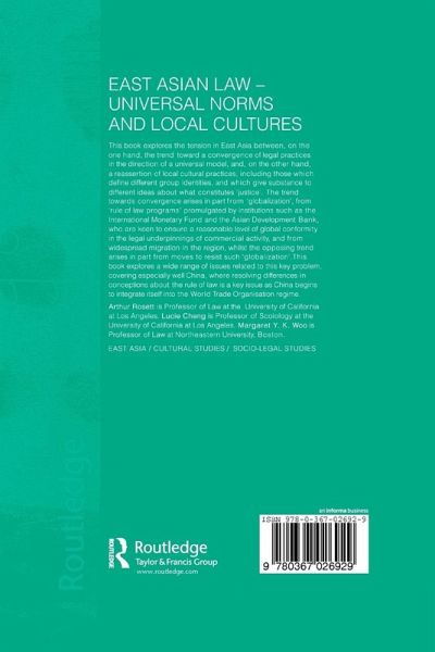This work explores the tension in East Asia between the trend towards a convergence of legal practices in the direction of a universal model and a reassertion of local cultural practices. The trend towards convergence arises in part from 'globalisation', from 'rule of law programs' promulgated by institutions such as the International Monetary Fund and the Asian Development Bank, and from widespread migration in the region, whilst the opposing trend arises in part from moves to resist such 'globalisation'. This book explores a wide range of issues related to this key problem, covering China in particular, where resolving differences in conceptions about the rule of law is a key issue as China begins to integrate itself into the World Trade Organisation regime.
