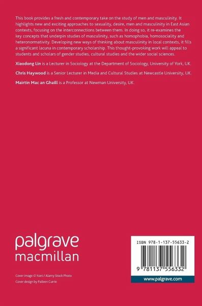 Foreword. Experimental Masculinities, Narrative Empathy and Cosmopolitan Genders Across the Globe; Ken Plummer.- Introduction; Xiaodong Lin, Chris Haywood and Máirtín Mac an Ghaill.- Part I. Being and Becoming: Subjectivities, identifications and intimacy.- Chapter 1. Single Male Rural-Urban Migrant Workers and the Negotiation of Masculinity in China; Xiaodong Lin.- Chapter 2. Acting Straight? Non-heterosexual Salarymen Working with Heteronormativity in the Japanese Workplace; Romit Dasgupta.- Chapter 3. Negotiating Family/Filial Responsibilities: Reflexivity, Tradition, and Taiwanese (Younger) Professional Men; Bo-Wei Chen and Máirtín Mac an Ghaill.- Chapter 4. Male Homosexuality in Hong Kong: a 20-year review of public attitudes towards homosexuality and experiences of discrimination self-reported by gay men; Yiu Tung Suen and Miu Yin Wong.- Part II. Representations: Producing and Consuming Sexual Masculinities; Chapter 5. Sinoglossia Incarnate: The Entanglements of Castration acrossthe Pacific; Howard Chiang.- Chapter 6. 'Same-Sex Wedding', Queer Performance and Spatial Tactics in Beijing; Hongwei Bao.- Chapter 7. 'Cinderella' in Reverse: Eroticizing Bodily Labour of Sympathetic Men in K-pop Dance Practice Video; Chuyun Oh.- Chapter 8. 'Branding Men': Exploring Men, Masculinity and Thai alcohol brands in East Asian Global Markets; Jhitsayarat Siripai and Chris Haywood.- Part III. Emerging Masculinities: Configuring Men's Futures.- Chapter 9. Herbivore Masculinities in Post-Millennial Japan; Justin Charlebois.- Chapter 10. Emerging Heterosexualities in an Era of TV Dating: Exploring young Chinese men's experiences of love and intimacy; Chao Yang.- Chapter 11. Weapons of the Weak Soldiers: Military Masculinity and Embodied Resistance in Taiwanese Conscription; Ying-Chao Kao.- Chapter 12. Beyond the Celebration of Losers: The construction of diaosi masculinity in contemporary Chinese youth culture; Siyang Cao.- Chapter 13. Pathways toward Progressive Gender Consciousness for Young Men in Taiwan; Herng-Dar Bih.