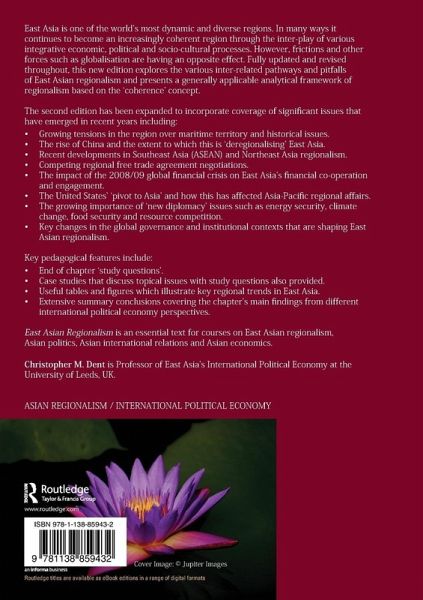 East Asia is one of the world's most dynamic and diverse regions and is also becoming an increasingly coherent region through the inter-play of various integrative economic, political and socio-cultural processes. Fully updated and revised throughout, this new edition explores the various ways in which East Asian regionalism continues to deepen. The second edition has been expanded to incorporate coverage of significant issues that have emerged in recent years including: Growing tensions in the region over maritime territory and historical issues Competing regional free trade agreement negotiations The impact of the global financial crisis on financial co-operation and engagement with global governance Obama's 'pivot to Asia' and developments in US relations with East Asia The influence of new technology and social media on micro-level regional relations The growing importance of 'new diplomacy' issues such as energy security, climate change, food security and international migration. Key pedagogical features include: end of chapter 'study questions' case studies that discuss topical issues with study questions also provided useful tables and figures which illustrate key regional trends in East Asia Extensive summary conclusions covering the chapter's main findings from different international political economy perspectives. East Asian Regionalism is an essential text for courses on East Asian regionalism, Asian politics and Asian economics.