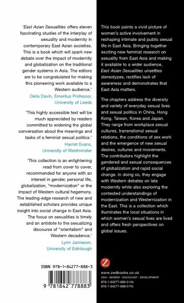 This book paints a vivid picture of women's active involvement in reshaping intimate and public sexual life in East Asia. In bringing together exciting new feminist research on sexuality from East Asia and making it available to a wider audience, East Asian Sexualities unsettles stereotypes, rectifies lack of awareness and demonstrates that East Asia matters. The chapters address the diversity and variety of everyday sexual lives and sexual politics in China, Hong Kong, Taiwan, Korea and Japan. They range from workplace sexual cultures, trans-national sexual relations, the conditions of sex-work and the emergence of new sexual desires, cultures and movements. The contributors highlight the gendered and sexual consequences of globalization and rapid social change. In doing so, they engage with western debates on late modernity while also exploring the contested understandings of modernization and westernization in the East. This is a collection which illuminates the local situations in which women's sexual lives are lived and offers fresh perspectives on global issues.