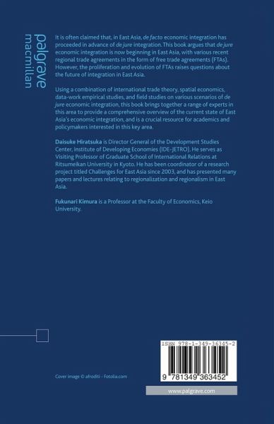 Preface From De Facto to De Jure Economic Integration in East Asia: Past, Present and Future; D.Hiratsuka & F.Kimura Modality of East Asia's Economic Integration; F.Kimura The East Asian Noodle Bowl Syndrome; R.E.Baldwin Rules of Origin, Local Content, and Cumulative Local Content in East Asia: Application of an International Input-Output Analysis; I.Kuroiwa Making Sense of the Timeliness of Transportation in Economic Integration; N.Hamaguchi Evolution of core-periphery structure; N.Hamaguchi Industrialization through vertical production networks: Can Laos participate in Vertical Production Networks?; D.Hiratsuka, S.Keola & M.Suzuki Structural change in intermediate, consumption and capital goods trade during economic integration: the EU experience; B.Los & J.Oosterhaven Spillovers and Linkages between Local and Foreign Plants; K.Yokota Do Local Suppliers Benefit from Economic Integration? Evidence from Outward FDI from ASEAN; D.Hiratsuka Comparing Bilateral and Multilateral ASEAN-10+4 Free Trade Agreements: Possible Impacts on Member and Non-member countries; M.Fouquin How will ASEAN+3 Integration Accelerate Investment?; K.Itakura