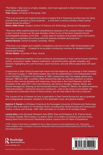 This groundbreaking treatment of post-communist developments in East Central Europe examines politics, economics, media, religious institutions, transitional justice, gender inequality, and literature, highlighting the overt functions, latent functions, and side effects associated with each sphere.