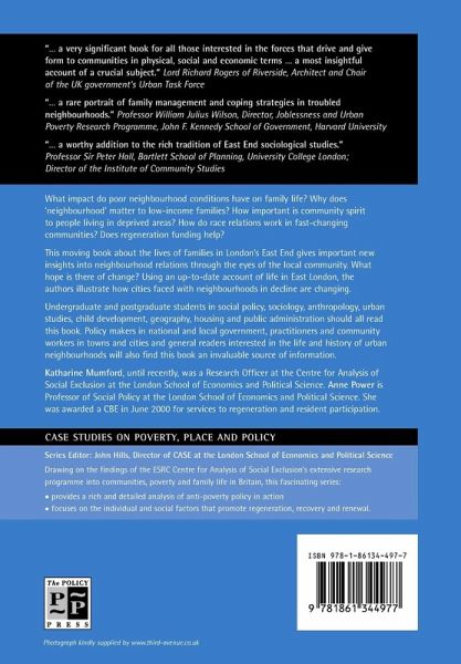 This moving book about the lives of families in London's East End gives important new insights into neighbourhood relations (including race relations), through the eyes of the local community. Using an up-to-date account of life in East London, the authors illustrate how cities faced with neighbourhoods in decline are changing.