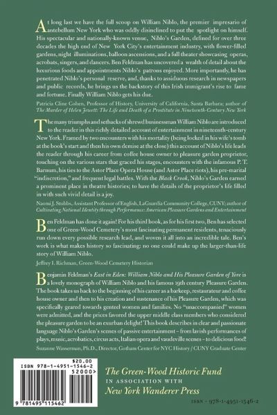 William Niblo was the pre-eminent coffee-house operator of New York City from 1813 to 1828 and then became world famous as the founder and operator of NIblo's Garden, a genteel indoor/outdoor pleasure garden modeled on London's famed Vauxhall Garden. In various incarnations on the same site, Niblo's Garden became the Radio City Music Hall of its days. Anyone who was or aspired to be famous on New York's stage appeared at Niblo's, be they opera singers, thespians, acrobats or more.