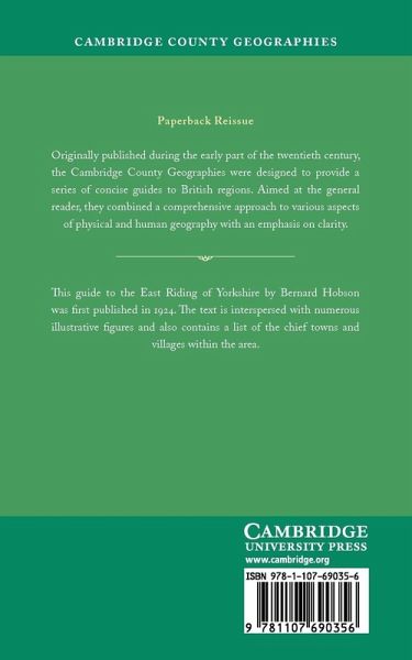 Originally published during the early part of the twentieth century, the Cambridge County Geographies were designed to provide a series of concise guides to British regions. Aimed at the general reader, they combined a comprehensive approach to various aspects of physical and human geography with an emphasis on clarity. This guide to the East Riding of Yorkshire by Bernard Hobson was first published in 1924. The text is interspersed with numerous illustrative figures and also contains a list of the chief towns and villages within the area.