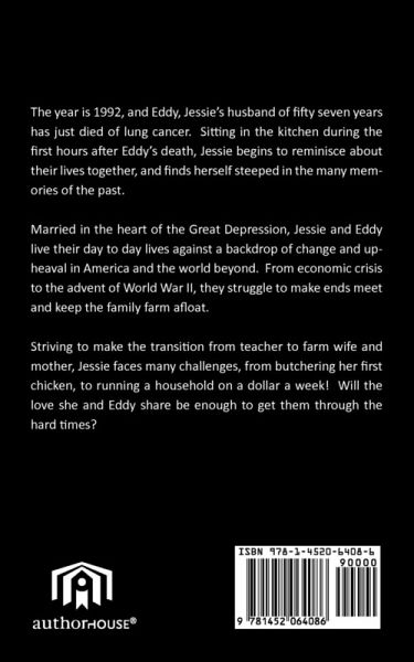 The year is 1992, and Eddy, Jessie's husband of fifty seven years has just died of lung cancer. Sitting in the kitchen during the first hours after Eddy's death, Jessie begins to reminisce about their lives together, and finds herself steeped in the many memories of the past. Married in the heart of the Great Depression, Jessie and Eddy live their day to day lives against a backdrop of change and upheaval in America and the world beyond. From economic crisis to the advent of World War II, they struggle to make ends meet and keep the family farm afloat. Striving to make the transition from teacher to farm wife and mother, Jessie faces many challenges, from butchering her first chicken, to running a household on a dollar a week! Will the love she and Eddy share be enough to get them through the hard times?