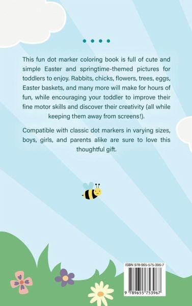 Look no further than this eggcellent Easter basket stuffer for the 2-4-year-old in your life! This fun dot marker coloring book is full of cute and simple Easter and springtime-themed pictures for toddlers to enjoy. Rabbits, chicks, flowers, trees, eggs, Easter baskets, and many more will make for hours of fun, while encouraging your toddler to improve their fine motor prewriting skills and discover their creativity (all while keeping them away from screens!). This perfect-for-toddlers coloring book features:30+ Easter-themed coloring pages Extra practice activities Single-sided pages to avoid bleed-through Lightweight design (perfect for those Easter baskets!) A glossy cover Compatible with classic dot markers in varying sizes, boys, girls, and parents alike are sure to love this thoughtful gift. Dot markers not included.
