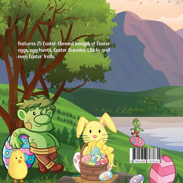 Easter themed colouring book full of beautifully illustrated images of Easter eggs, Easter Bunnies, Easter Trolls and egg hunts. Suitable for all ages 4+. Specification: 50 pages 25 images. Printed on high quality white paper, single sided images to avoid bleed through issues. Dimensions = 8.5 x 8.5 inches Unique and colourful matte cover design