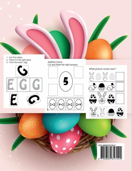 Easter Time is coming! Happy Easter with eggs and cute bunnies! Time to color, cut and paste Easter Eggs and Bunnies! Easter Cut and Paste Workbook for Preschool is a part of the Jennifer C. Lawrence Seasonal Coolection - Bunny & Easter Holiday Coloring and Activity Books This is a perfect gift for ages 3 to 8 years. Then this workbook is for you. It is full of fun, beautiful drawings of Eatser eggs cute bunnies and many more. Our Easter Cute and Paste is a perfect gift for girls, boys and kids ages 3 to 8 years. The magical images with Easter eggs and cute bunnies will make every hour spent by your kid be full of amazing moments. Your kid will discover, learn, color, cut and paste Easter eggs and cute bunnies in 27 amazing unique pages. Age suggestions: - Coloring Book For Kids - Coloring Book for Preschool Age - Coloring Book for Kids Ages 3-6 - Coloring Book for Kids Ages 6-8 Buy and give the perfect gift for your KID today! EASTER CUT AND PASTE: Ø Designs are single sided, with a variety of Easter eggs and cute bunnies. Ø 27 unique coloring pages so that crayons, colored pencils or markers will not bleed through. Ø Top quality 60lb paper that is perfect for coloring. Ø The pages are a nice, large format - 8.5 x11 size. Ø Glossy paperback cover. Ø Book with 60 pages.