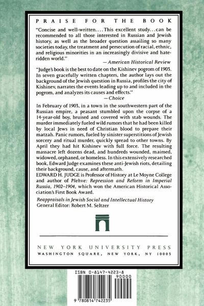 Judge's book covers the Kishinev pogrom of 1903. In seven chapters, the author lays out the background of the Jewish question in Russia, profiles the city of Kishinev, narrates the events leading up to and included in the pogrom, and analyzes its causes and effects.