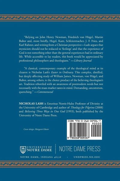 A classical, contemporary example of the theological mind at its clearest is Nicholas Lash's Easter in Ordinary. This complex, distilled, but deeply affecting study of William James, Newman, von Hügel, and Buber, among others, is the choice product of the believing theologian's art. Tradition rebottled with an awareness of postmodern needs but not necessarily with the mass-market tastes in mind. Demanding, uncommon, quenching. -Commonweal