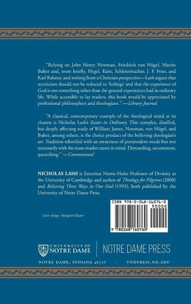 A classical, contemporary example of the theological mind at its clearest is Nicholas Lash's Easter in Ordinary. This complex, distilled, but deeply affecting study of William James, Newman, von Hügel, and Buber, among others, is the choice product of the believing theologian's art. Tradition rebottled with an awareness of postmodern needs but not necessarily with the mass-market tastes in mind. Demanding, uncommon, quenching. -Commonweal