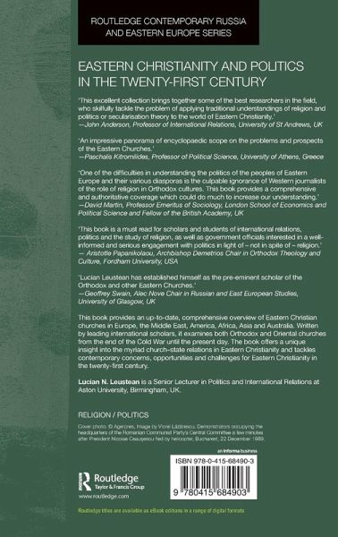 1. Eastern Christianity and Politics in the Twenty-First Century. An Overview Part I: Chalcedonian Churches 2. The Ecumenical Patriarchate 3. The Russian Orthodox Church 4. The Serbian Orthodox Church5. The Romanian Orthodox Church 6. The Bulgarian Orthodox Church 7. The Georgian Orthodox Church 8. The Orthodox Church of Cyprus 9. The Orthodox Church of Greece 10. The Polish Orthodox Church 11. The Orthodox Church of Albania 12. The Orthodox Church in the Czech Lands and Slovakia 13. Orthodox Churches in America 14. The Finnish Orthodox Church 15. Orthodox Churches in Estonia 16. Orthodox Churches in Ukraine 17. The Belarusian Orthodox Church 18. The Lithuanian Orthodox Church 19. The Latvian Orthodox Church 20. Orthodox Churches in Abkhazia, South Ossetia and Transnistria 21. Orthodox Churches in Moldova 22. The Macedonian Orthodox Church 23. Orthodox Churches in Japan, China and Korea 24. Orthodox Churches in Australia Part II: Non-Chalcedonian Churches 25. The Armenian Apostolic Church 26. The Ethiopian Orthodox Tewahedo Church and the Eritrean Tewahedo Orthodox Church 27. The Coptic Orthodox Church, Fiona McCallum 28. The Syrian Orthodox Church 29. Syrian Christian Churches in India Part III: The Holy Apostolic Catholic Assyrian Church of the East 30. The Holy Apostolic Catholic Assyrian Church of the East Part IV: Greek Catholic Churches in Eastern Europe 31. The Ukrainian Greek Catholic Church 32. The Romanian Greek Catholic Church 33. The Bulgarian Eastern Catholic Church 34. The Hungarian Greek Catholic Church Part V: Challenges in the Twenty-First Century 35. Orthodox Churches and Migration 36. The Greek Catholic Churches in Post-War Catholic-Orthodox Relations 37. Secularism without Liberalism: Orthodox Churches, Human Rights and American Foreign Policy in Southeastern Europe 38. Orthodox Christianity and Globalisation