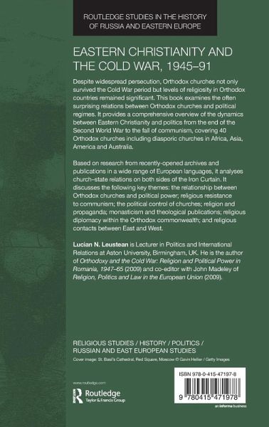 Despite widespread persecution, Orthodox churches not only survived the Cold War period but levels of religiosity in Orthodox countries remained significant. This book examines the often surprising relations between Orthodox churches and political regimes. It provides a comprehensive overview of the dynamics between Eastern Christianity and politics from the end of the Second World War to the fall of communism, covering 40 Orthodox churches including diasporic churches in Africa, Asia, America and Australia. Based on research from recently-opened archives and publications in a wide range of European languages, it analyses church-state relations on both sides of the Iron Curtain. It discusses the following key themes: the relationship between Orthodox churches and political power; religious resistance to communism; the political control of churches; religion and propaganda; monasticism and theological publications; religious diplomacy within the Orthodox commonwealth; and religious contacts between East and West.