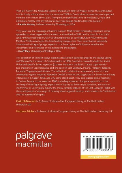 This collection of thirteen essays examines reactions in Eastern Europe to the Prague Spring and Warsaw Pact invasion of Czechoslovakia in 1968. Countries covered include the Soviet Union and specific Soviet republics (Ukraine, Moldavia, the Baltic States), together with two chapters on Czechoslovakia and one each on East Germany, Poland, Hungary, Bulgaria, Romania, Yugoslavia and Albania. The individual contributions explain why most of these communist regimes opposed Alexander Dubcek's reforms and supported the Soviet-led military intervention in August 1968, and why some stood apart. They also explore public reactions in Eastern Europe to the events of 1968, including instances of popular opposition to the crushing of the Prague Spring, expressions of loyalty to Soviet-style socialism, and cases of indifference or uncertainty. Among the many complex legacies of the East European '1968' was the development of new ways of thinking about regional identity, state borders, de-Stalinisation and the burdens of the past.