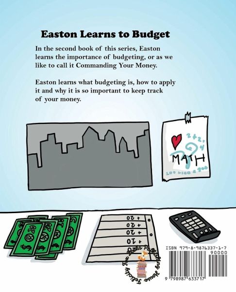 Easton Learns to Budget In the second book of this series, Easton learns the importance of budgeting, or as we like to call it "Commanding Your Money." Easton learns what budgeting is how to apply it and why it is so important to keep track of your money. We want children to learn financial literacy and how they can begin to manage their money.