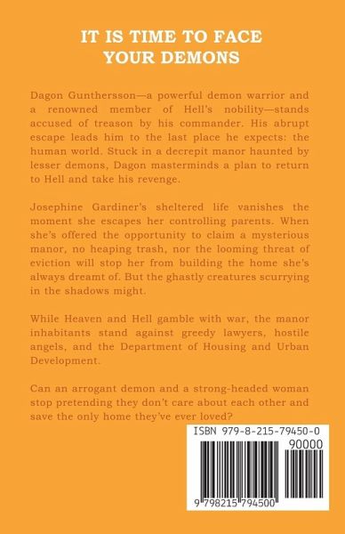 You inherited a house, but it has a minor demon problem... Dagon Gunthersson—a powerful demon warrior and a renowned member of Hell's nobility—stands accused of treason by his commander. His abrupt escape leads him to the last place he expects: the human world. Stuck in a decrepit manor haunted by lesser demons, Dagon masterminds a plan to return to Hell and take his revenge. Josephine Gardiner's sheltered life vanishes the moment she escapes her controlling parents. When she's offered the opportunity to claim a mysterious manor, no heaping trash, nor the looming threat of eviction will stop her from building the home she's always dreamt of. But the ghastly creatures scurrying in the shadows might. While Heaven and Hell gamble with war, the manor inhabitants stand against greedy lawyers, hostile angels, and the Department of Housing and Urban Development. Can an arrogant demon and a strong-headed woman stop pretending they don't care about each other and save the only home they've ever loved?