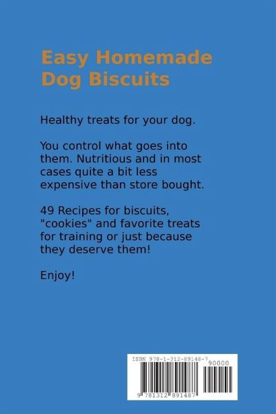 Healthy treats for your dog. You control what goes into them. Nutritious and in most cases quite a bit less expensive than store bought. 49 Recipes for biscuits, "cookies" and favorite treats for training or just because they deserve them!