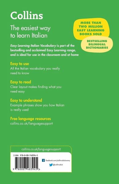 Collins Easy Learning Italian Vocabulary helps you build up your vocabulary skills and is the ideal companion to any of the ever-popular Easy Learning Italian range.