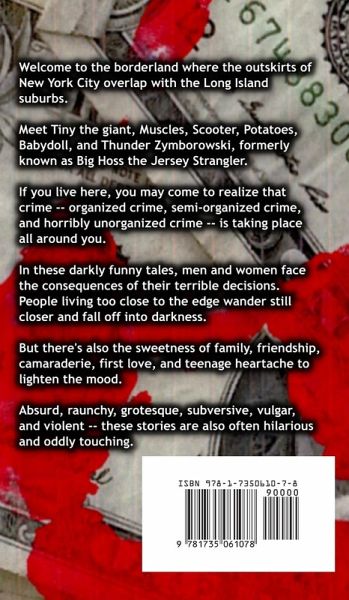 When you live on the south shore of Long Island a few miles east of Queens, mobsters aren't just characters you see in the movies, sometimes they turn out to befriends of friends, your neighbors, guys who drink in the same bar as you. Welcome to the borderland where the outskirts of New York City overlap with the Long Island suburbs. Meet Tiny the giant, Muscles, Scooter, Potatoes, Babydoll, and Thunder Zymborowski, formerly known as Big Hoss the Jersey Strangler. If you live here, you may come to realize that crime -- organized crime, semi-organized crime, and horribly unorganized crime -- is taking place all around you. In these darkly funny tales, men and women face the consequences of their terrible decisions. People living too close to the edge wander still closer and fall off into darkness. But there's also the sweetness of family, friendship, camaraderie, first love, and teenage heartache to lighten the mood. Absurd, raunchy, grotesque, subversive, vulgar, and violent -- these stories are also often hilarious and oddly touching.