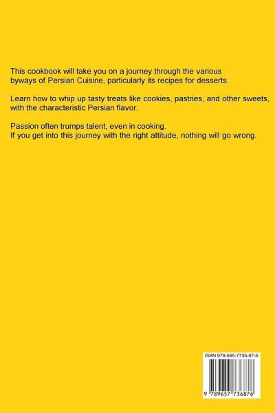 Persian Cuisine This cookbook will take you on a journey through the various byways of Persian Cuisine, particularly its recipes for desserts. Learn how to whip up tasty treats like cookies, pastries, and other sweets, with the characteristic Persian flavor. Passion often trumps talent, even in cooking. If you get into this journey with the right attitude, nothing will go wrong.
