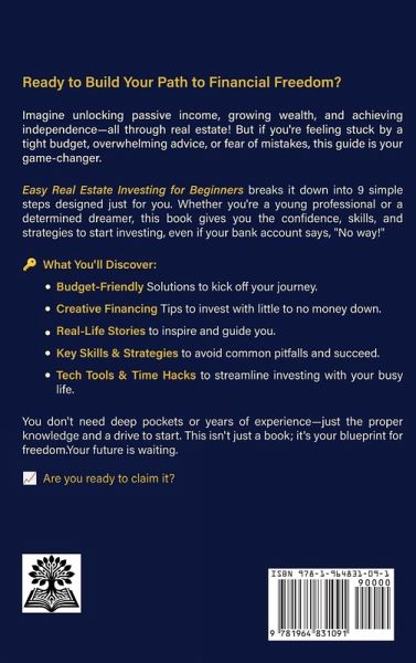 No money? No experience? No problem! Start investing in real estate and build wealth in 90 days! Are you tired of struggling to make ends meet? Do you dream of becoming a millionaire but have no idea how to get there? If you've ever asked yourself any of these questions... this book is for you! ¿¿¿¿¿Award-Winning Book that gained a 5-Star Review from Readers' Favorite! If owning real estate creates 90% of millionaires, why not you? It's time to take control and start building wealth-without the confusion, overwhelm, or guesswork. This book gives you that blueprint to real estate success that will help you master the art of investing, spot highly profitable opportunities, and create your own strategies to reach millionaire status. Unlock the Secrets to Smart Investing This isn't just another book filled with complicated jargon or outdated theories. It's a clear, action-packed roadmap that will show you exactly how to find, finance, and profit from real estate deals, whether you're looking at rental properties, flipping houses, or commercial real estate investments. You Will Learn: Laying the Foundation for Wealth: Learn why real estate investing is one of the safest ways to build wealth, how to develop an investor mindset, and the power of real estate as a financial asset. Finding & Evaluating Profitable Properties: Understand how to locate real estate opportunities, perform real estate analysis, and use the 1% rule and cap rates to assess cash flow potential before making a purchase. "Wealth Without Cash" - Creative Real Estate Lending & Financing Strategies: No big savings? No problem. Discover how to invest with little to no money down using house hacking, seller financing, real estate syndication, partnerships, and other creative financing strategies. Making the Deal & Growing Your Capital: Master real estate negotiation tactics, learn how to secure off-market real estate deals, and structure rental property investments that generate consistent passive income. Maximizing Cash Flow & Diversification for Long-Term Wealth: Learn how to set the right rental rates, reduce vacancies, and use tax benefits to boost cash flow, while diversifying your portfolio to balance residential and commercial real estate investments. Scaling & Expanding Your Portfolio: Use the BRRRR strategy (Buy, Rehab, Rent, Refinance, Repeat) to grow your real estate portfolio and build lasting wealth without taking unnecessary risks. Protecting Your Investments While Mitigating Risks: Real estate is powerful, but every investment carries risk. Learn how to minimize financial losses, use LLCs and insurance to protect your assets, and create an exit strategy that ensures maximum return on investment. Ready to Take Control of Your Financial Future? Don't let another year go by wondering "what if?" Take the first step towards building your real estate wealth today!