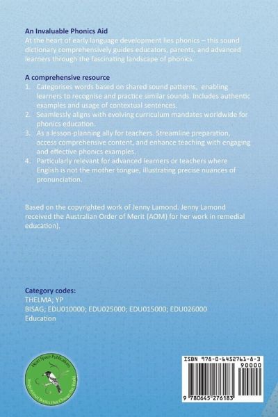An Invaluable Phonics Aid At the heart of early language development lies phonics - this sound dictionary comprehensively guides educators, parents, and advanced learners through the fascinating landscape of phonics. A comprehensive resource 1) Easy Spelling's Sound Dictionary categorises words based on shared sound patterns, enabling learners to recognise and practice similar sounds. It includes authentic examples and usage of contextual sentences. 2) Seamlessly aligns with evolving curriculum mandates worldwide for phonics education. 3) For teachers, the dictionary serves as a lesson-planning ally. Streamline preparation, access comprehensive content, and enhance teaching with engaging and effective phonics examples. 4) Particularly relevant for advanced learners or teachers where English is not the mother tongue, illustrating precise nuances of pronunciation.