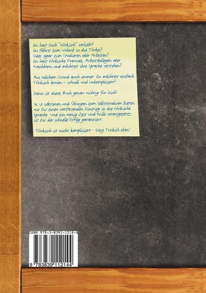 Zweite, überarbeitete und erweiterte Auflage. Jetzt zusätzlich mit praktischem Grammatik-Glossar und umfangreichem Lehnwort-Verzeichnis.Du hast Dich "türkisch" verliebt? Du fährst zum Urlaub gerne in die Türkei? Oder sogar zum Studieren oder Arbeiten?Du hast türkische Freunde, Mitschüler, Arbeitskollegen oder Nachbarn - und möchtest ihre Sprache verstehen?Aus welchem Grund auch immer: Du möchtest einfach Türkisch lernen - für Schule, Studium, Urlaub, Freizeit und Beruf. Schnell und unkompliziert? Dann ist dieses Buch genau richtig für Dich!In 17 Lektionen und Übungen zum Selbststudium bieten wir allen, die noch keine Vorkenntnisse vorweisen können, einen umfassenden Einstieg in die türkische Sprache. Und ein wenig Zeit und Wille vorausgesetzt, ist Dir der schnelle Erfolg garantiert. Glänze beim Feilschen im Urlaub mit Deinem Können! Verblüffe den Gemüsehändler an der Ecke! Verleihe Deinen Gefühlen eine blumige Sprache! Tauche ein in die faszinierende Welt der türkischen Sprache und verschaffe Dir Zugang zu Land, Menschen und Kultur!Türkisch ist nicht kompliziert - Easy Turkish eben!