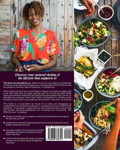 The food we eat defines us. What we put on our plates is a reflection of where we’ve come from and where we’re going. It’s also an indication of our current state of balance… or imbalance. Who could YOU be if you could FINALLY figure out what a healthy diet is for YOU and how to adapt and adjust it to support your changing needs through the rollercoaster ride of mental, physical and emotional highs and lows that carries us through the seasons from New Year’s resolutions to holiday party blowouts every year? Ayurveda has the answer. And now… so will you! This book is a love-letter to anyone who is struggling to understand how to feed themselves as an individual in a world full of "one-size-fits-all" solutions. It breaks down the fundamentals of Ayurveda in an easy and relatable way and provides simple guidelines for understanding what it means to nurture and nourish your your whole self as your needs change from season to season and year to year. Inside you’ll find: Over 110 delicious, healthy and easy to make recipes for every eater, every meal and every season! Guidelines for seasonal living and tips for incorporating self care and healthy eating into your day. Detailed information about the energetics and healing qualities of more than 200 ingredients, and recipes for alleviating common issues with the foods and herbs in your kitchen. Guidance for setting up your own Ayurvedic pantry and what to restock it with from season to season. Quizzes and questionnaires to help you discover your true nature and current states of mind- body balance. PLUS exclusive links to BONUS audio and video content including tutorials, reference guides, and Ayurvedic product and information resources!