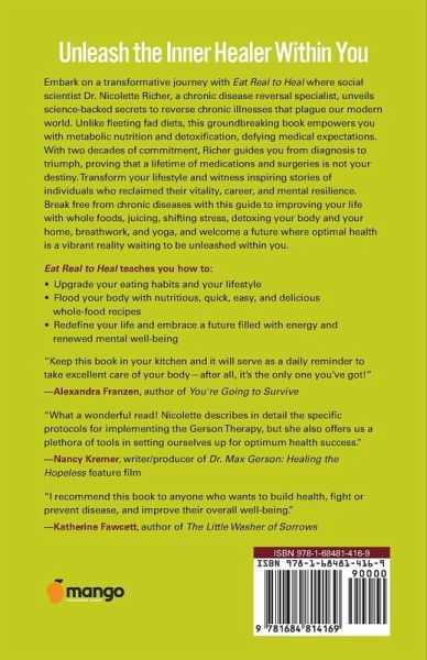 Healthy Foods for Better Lives"This is not a fad diet. This is for real! And it works...I recommend this book to anyone who wants to live a long and healthful life." -Sylvia Dolson, author, aspiring centenarian and animal welfare advocate#1 Best Seller in Juices & Smoothies and Special DietsUnlock the power of a plant-based whole foods diet with Eat Real to Heal. Featuring updated resources, this eat healthy cookbook also includes mind and body heathy practices like yoga, nutrient-dense foods, and much more. Change your diet and power up your body. If you want to feel active, clear-minded, and strong, it all starts with the food you put into your body. Eat Real to Heal shows you the organic, plant-based foods you should be eating. Focusing on diet, nutrition, and plant-based whole foods, this book teaches you how to power up your system with food for a healthy life. Eat better and fell better with vegan recipes. Eat Real to Heal shows you how to create and follow a meal plan that utilizes nutritious vegan recipes, made with pure and organic ingredients, that are quick, easy, and delicious! Also, learn how to improve your life with juicing, managing stress, detoxifying your home, breathing exercises, and yoga. Eat Real to Heal teaches you how to:Upgrade your eating habits and your lifestyleFlood your body with nutrients foodsEmbrace a whole foods dietIf you liked Love and Lemons Simple Feel Good Food; Eat Better, Feel Better; or Simple and Delicious Vegan; you'll love Eat Real to Heal.