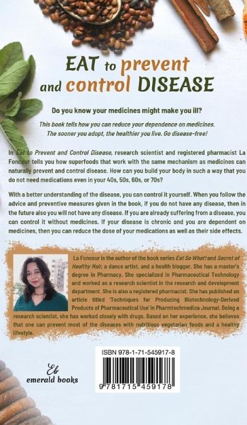 Do you know your medicines might make you ill? This book tells how you can reduce your dependence on medicines. The sooner you adopt, the healthier you live. Go disease-free! Over the years, we have been repeating the same eating mistakes that our parents made. This is the reason why the prevalence of diseases like diabetes, high blood pressure, and arthritis is increasing in the population over time. In Eat to Prevent and Control Disease, research scientist and registered state pharmacist La Fonceur will tell you how foods that work with the same mechanism as medicines can naturally prevent and control disease. How can you build your body in such a way that you do not need medications even in your 40s, 50s, 60s, or 70s? How can you prevent disease even if you have a family history of that disease? How can you control chronic diseases like diabetes, high blood pressure, arthritis, and many others? With a better understanding of the disease, you can control it yourself. When you follow the advice and preventive measures given in the book, If you do not have any disease, then in the future also you will not have any disease. If you are already suffering from a disease, you can control it without medicines. If your disease is chronic and you are dependent on medicines, then you can reduce the dose of your medications as well as their side effects.