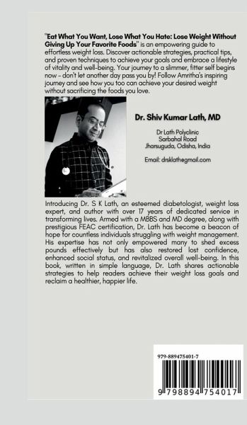 "Eat What You Love, Lose What You Hate: Lose Weight Without Giving Up Your Favorite Foods" is an empowering guide to effortless weight loss. Discover actionable strategies, practical tips, and proven techniques to achieve your goals and embrace a lifestyle of vitality and well-being. Your journey to a slimmer, fitter self begins now - don't let another day pass you by! Follow Amritha's inspiring journey and see how you too can achieve your desired weight without sacrificing the foods you love.