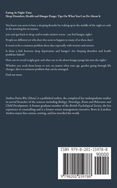 Eating At Night-Time Sleep Disorders, Health and Hunger Pangs: Tips On What You Can Do About It You know you seem to have a sleeping disorder by waking up in the middle of the night or early in the morning for no reason, you can't get back to sleep, and to make matters worse - you feel hungry, right? People are different yet why does this seem to happen to many of us these days? It seems to be a common problem these days especially with worries and stresses. Is there a link between sleep deprivation and hunger? Are sleeping disorders and health problems linked? How can we avoid weight gain and what can we do about hunger pangs late into the night? Whether you work from home or not, no matter what your age, gender, going through life changes, this is a common problem that can be managed. Find out more. GET THIS BOOK NOW