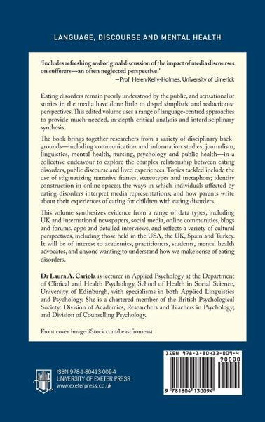 Eating disorders remain little understood by the public, and sensationalist stories in the media have done little to dispel simplistic and reductionist perspectives. This book uncovers compelling insights on the intersection of language, discourse and mental health.