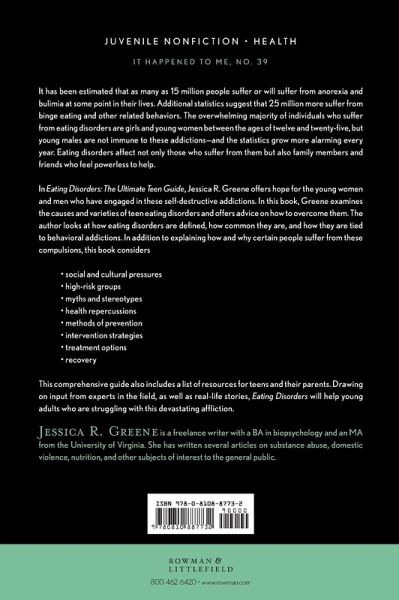 Five to 16 million individuals suffer or will suffer from anorexia and bulimia at some point in their lives. It's possible that 25 million more suffer from binge eating and other related eating disorders. Additionally: 90-95% of those who have eating disorders are girls and young women between the ages of 12 and 25 86% of individuals afflicted with EDs report an onset before the age of 20 While many books have been published on eating disorders, this is one of the few aimed specifically at the older teen market. It examines the causes and varieties of teen eating disorders and offers advice on how to overcome them. The author looks at how eating disorders are defined, how common they are, and how they are tied into behavioral addictions. Besides those affected, the book will address how the behavior significantly impacts family and friends. After discussing the whys, the book offers ways in which teens can combat the behavior, which includes a list of resources for teens and their parents.