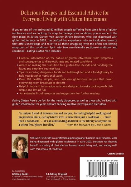 Gluten intolerancean incurable autoimmune condition that causes severe abdominal pain, diarrhea, chronic fatigue, depression, and anxiety when gluten (proteins found in specific cereal grains) is present in the systemaffects more than 2 million Americans today, and the numbers continue to grow. Now, in Eating Gluten Free, author and fellow sufferer Shreve Stockton offers an invaluable resource for all those seeking relief from the symptoms of gluten intolerance, also known as celiac disease. Split into two user-friendly sections, Eating Gluten Free first provides essential information on the nature of the condition, necessary lifestyle modifications, and tips for avoiding dangerous foods and hidden gluten, and much more. The second section offers more than 100 healthy and delicious gluten-free recipes, ranging from breakfast to dessert, and features helpful tips and advice designed to make cooking each dish simple and lots of fun. Complete with an extensive resource section, Eating Gluten Free is perfect for everyone diagnosed with gluten intolerance as well as for those simply looking for a healthy way to reduce wheat and gluten in their diet.