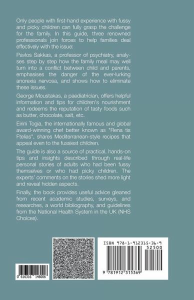 How can I make sure that my child is well nourished? How can I restore good relations between parents and children in our family?" Only people with a first-hand experience with fussy and picky children can fully grasp the challenge for the family. In this guide, three renowned professionals join forces to help families deal effectively with the issue: Pavlos Sakkas, a professor of psychiatry, analyses step by step how the family meal may well turn into a conflict between child and parents, emphasises the danger of the ever-lurking anorexia nervosa and shows how to eliminate these issues. George Moustakas, a paediatrician, offers helpful information and tips for children's nourishment and redeems the reputation of tasty foods such as butter, chocolate, salt, etc. Eirini Togia, the internationally famous and global award-winning chef better known as "Rena tis Ftelias", shares Mediterranean-style recipes that appeal even to the fussiest children. The guide is also a source of practical, hands-on tips and insights described through real-life personal stories of adults who had been fussy themselves or who had picky children. The experts' comments on the stories shed more light and reveal hidden aspects. Finally, the book provides useful advice gleaned from recent academic studies, surveys, and researches, a world bibliography, and guidelines from the National Health System in the UK (NHS Choices). Editor's preface It is not by coincidence that the authors and the editor of this book are all of the Mediterranean origins. In this part of the world, food is a severe issue! The same applies to the family. And they are best expressed together on the occasion of a joyful family feast. So, in the Mediterranean culture, a picky or fuzzy eater is a matter of concern that is worthy of attention. A holistic approach was the concept of the first edition, published earlier this year in Greece. It aimed to help expand a child's appetite as well as to highlight the family dynamics that may trigger this kind of behaviour. The success of the first Greek edition as well as substantial research evidence suggesting that these issues are, after all, common around the world, led us to this enhanced international publication in the English language. Introduction If you are reading this book, there is a good chance you may feel challenged by a child's eating behaviour. What is a fussy or a picky eater? Is there a difference with neophobia? Yes, there is. What is the primary root of the problem? Parents' behaviour and their relationship with their children. Do you know that if you change the colours and taste, with appropriate preparation, of the main foods that are usually rejected by picky children, the same children will eat them up? These are only some of the topics covered in the following chapters of this guide: Fundamental rules for parents to obtain and increase skills in building consistent and straightforward behaviours in their children with delicacies and children-friendly decorated dishes. Parents' anxiety control and their knowledge about the phenomenon and its types and what is normal or not remain a key. Because the solution requires knowledge of the problem for the parent to ask for help promptly from a doctor who is the only person and professional that can help solve this issue. This is the goal of this guide which covers eating difficulties from toddler age through to adolescence in five sections.