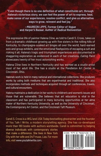 "Even though there is no one definition of what constitutes art, through Halena's victorious story, we can feel the power of art to express, heal, make sense of our experiences, resolve conflict, and give us alternative ways to grow, reinvent and feel joy." --MAUREEN LIPPE, Former Editor of Vogue and Harper's Bazaar, Author of Radical Reinvention The expressive life of painter Halena Cline, as told to Candi S. Cross, takes us from a dramatic childhood growing up with five sisters in the rolling hills of Kentucky, to champagne-soaked art binges all over the world, hard-earned solo and group exhibits, and the emotional flashpoints of escaping a cult and risking it all. Halena's tragic and triumphant experiences are documented in staggering exploration as evidenced by each of her creations. Eating Paint showcases twenty of her most astonishing works.