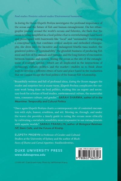 Moving away from a simplified food politics that is largely land based, Elspeth Probyn looks at food politics from an ocean-centric perspective by tracing the global movement of several marine species to explore the complex and entangled relationship between humans and fish.