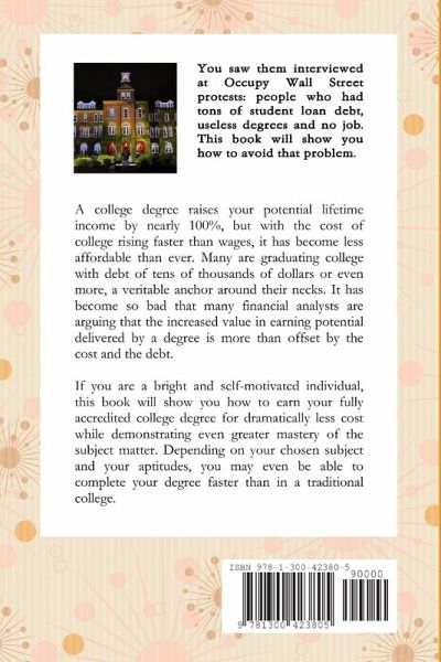 You saw them at Occupy Wall Street protests: people who had tons of student loan debt, useless degrees and no job. This book shows you how to avoid that problem. A college degree doubles your lifetime earning potential. Unfortunately, with college costs rising faster than wages, many financial analysts are now openly speculating whether a college education is still a worthwhile investment. This book will help you think outside the standard educational box, introducing you to lower cost alternatives that will lead you to an accredited degree faster, and at dramatically less expense.